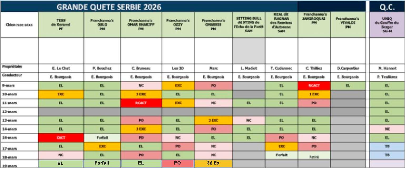 Content ce soir, tous les chiens venus à l’entraînement en Serbie cette année se sont classés .