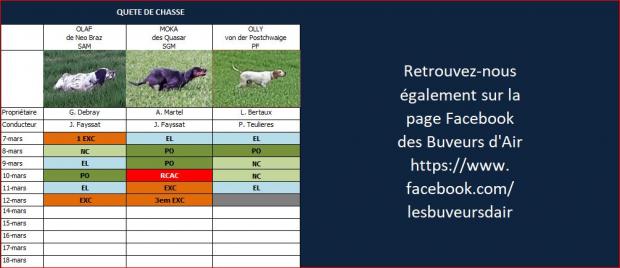 Or taxe 1ere présentation, parcours dans la bonne note, par moment se demande qui sont ces personnes qui me suivent, respecte un chevreuil, en fin de temps prend un point face à moi. Rapport à froid après le concours, refus sur un oiseau qui avait une odeur bien avancée... CQN.